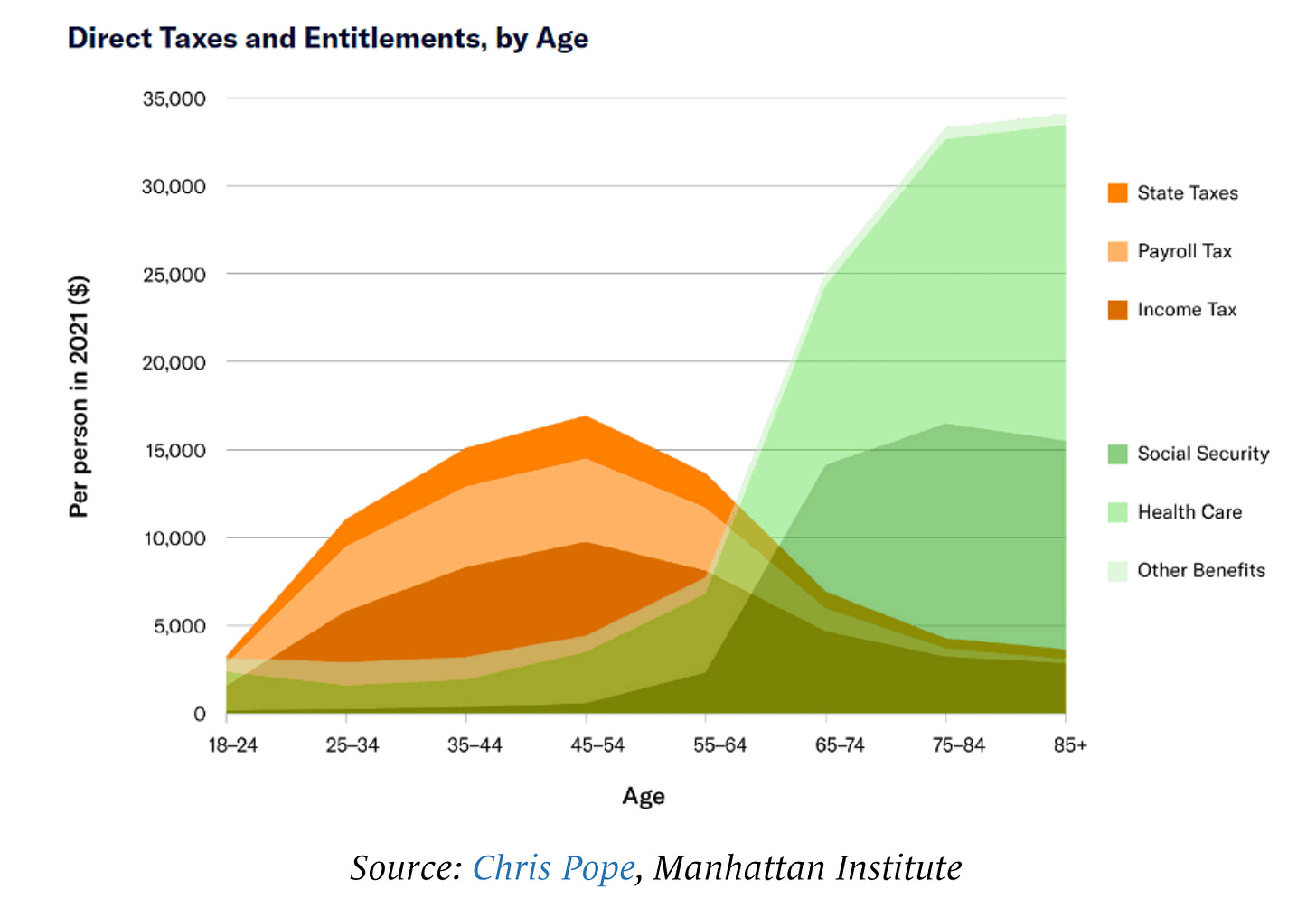 My friend Russell Greene recently coined the term and then helped popularize it in an essay in American Mind, and he’s right to make us uncomfortable: it names a reality too many of our leaders pretend they don’t see: federal spending is heavily skewed toward retirees, who tend to be much wealthier than younger generations.